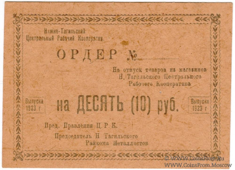 Ордер 1923 г. Бланк. На плотной бумаге. Нижне-Тагильский Центральный Рабочий Кооператив.