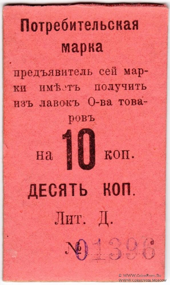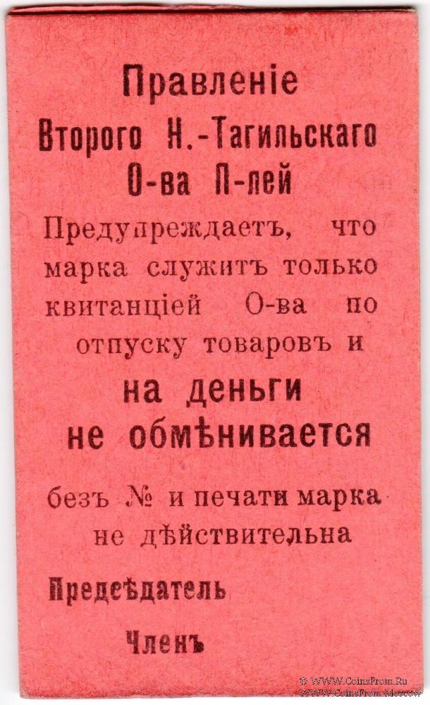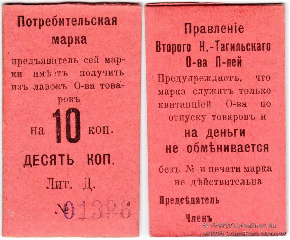 Потребительская марка (на картоне) без даты (1918 г.). Бланк. Без печати. Литера Д. Правление Второго Нижне-Тагильского Потребительского общества.
