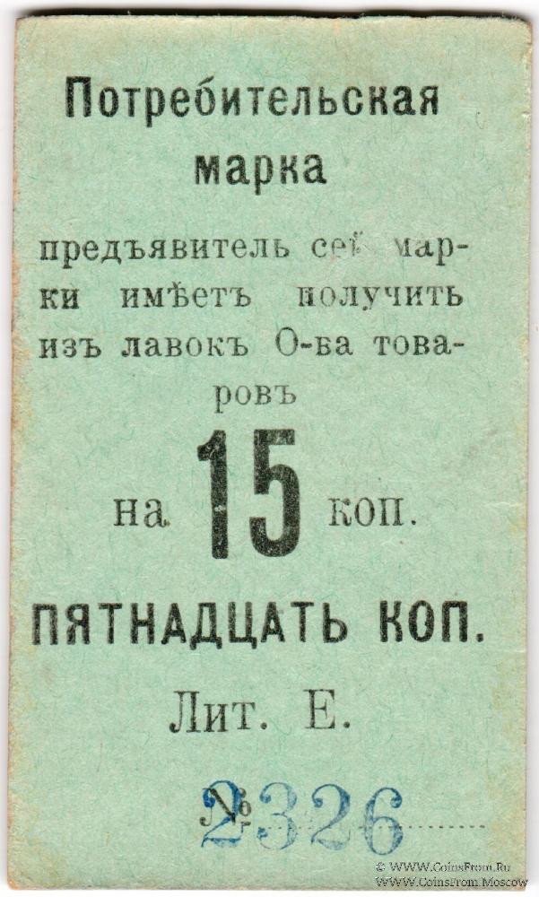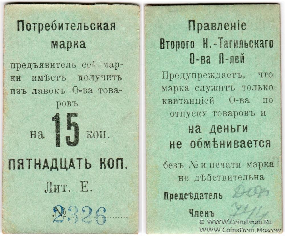 Потребительская марка (на картоне) без даты (1918 г.). Бланк. Без печати. Литера Е. Правление Второго Нижне-Тагильского Потребительского общества.