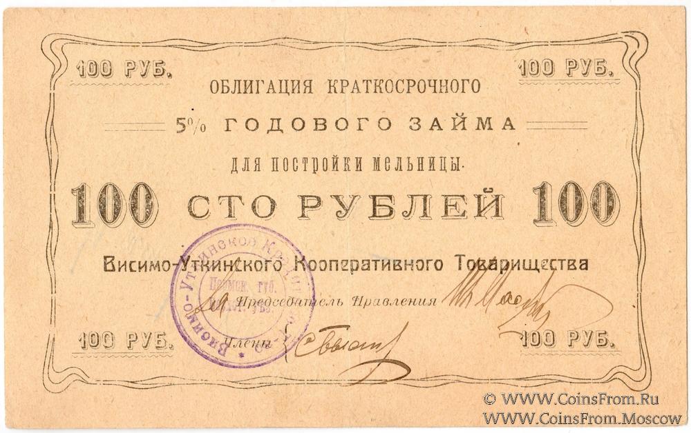 Печать круглая: "Висимо-Уткинское Кредитное Т-во *" (по кругу) / "Пермск. губ. / Верхот.уъз." (по центру, в две строки)