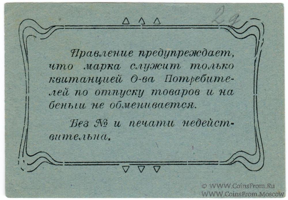 Марка. Литера Б. С номером и подписью на аверсе. Рамка 1 типа. БРАК: ошибка - "беньги". Висимо-Уткинское Общество потребителей.