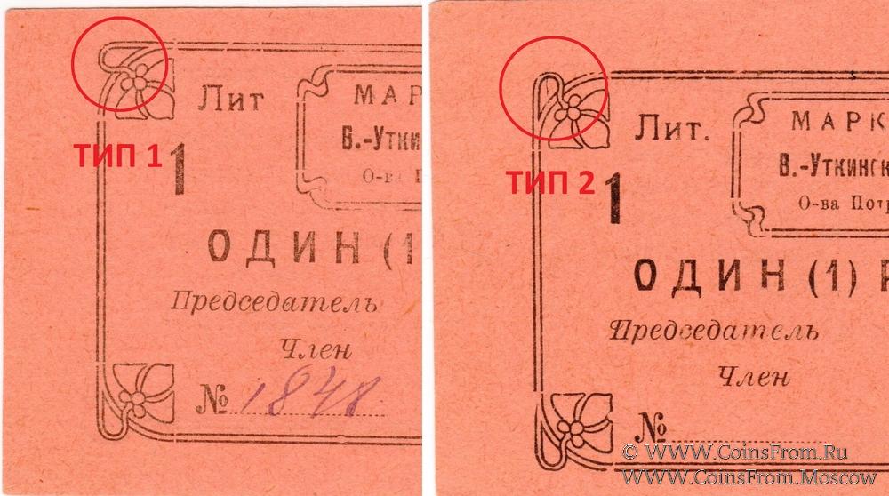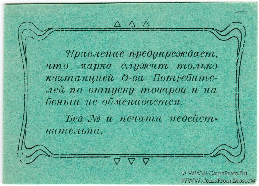 Марка. Литера Г. Бланк. Без номера. Рамка 1 типа. БРАК: ошибка в тексте на реверсе: "беньги". Висимо-Уткинское Общество потребителей.