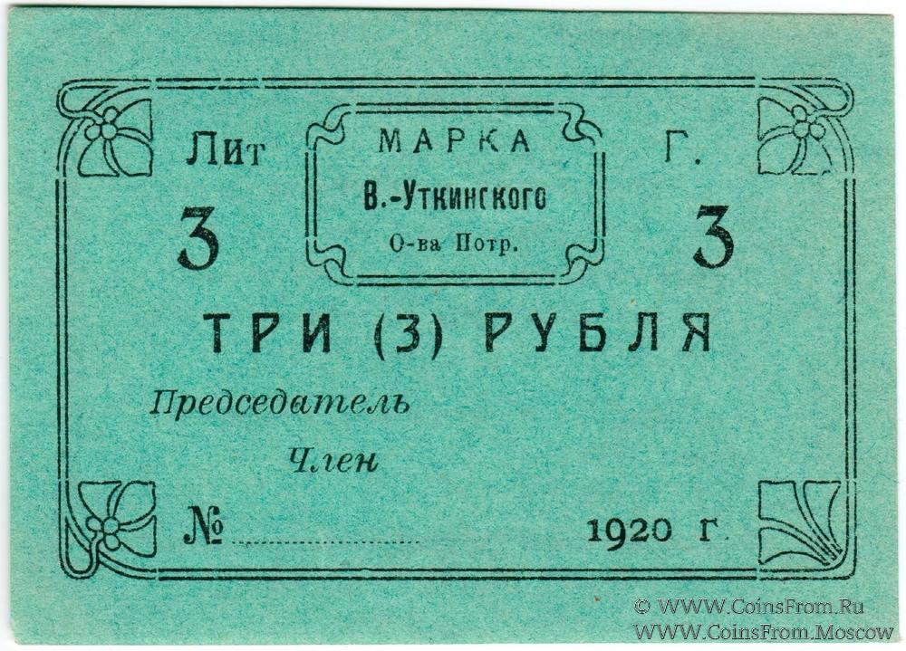 3 рубля 1920 г. (Висимо-Уткинск) БРАК