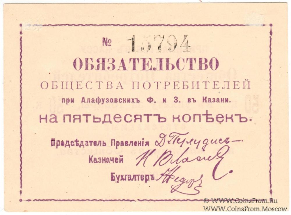 Обязательство. Бланк без печати. Общество Потребителей при Алафузовских фабриках и заводах в Казани.