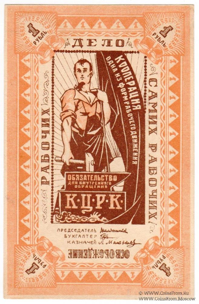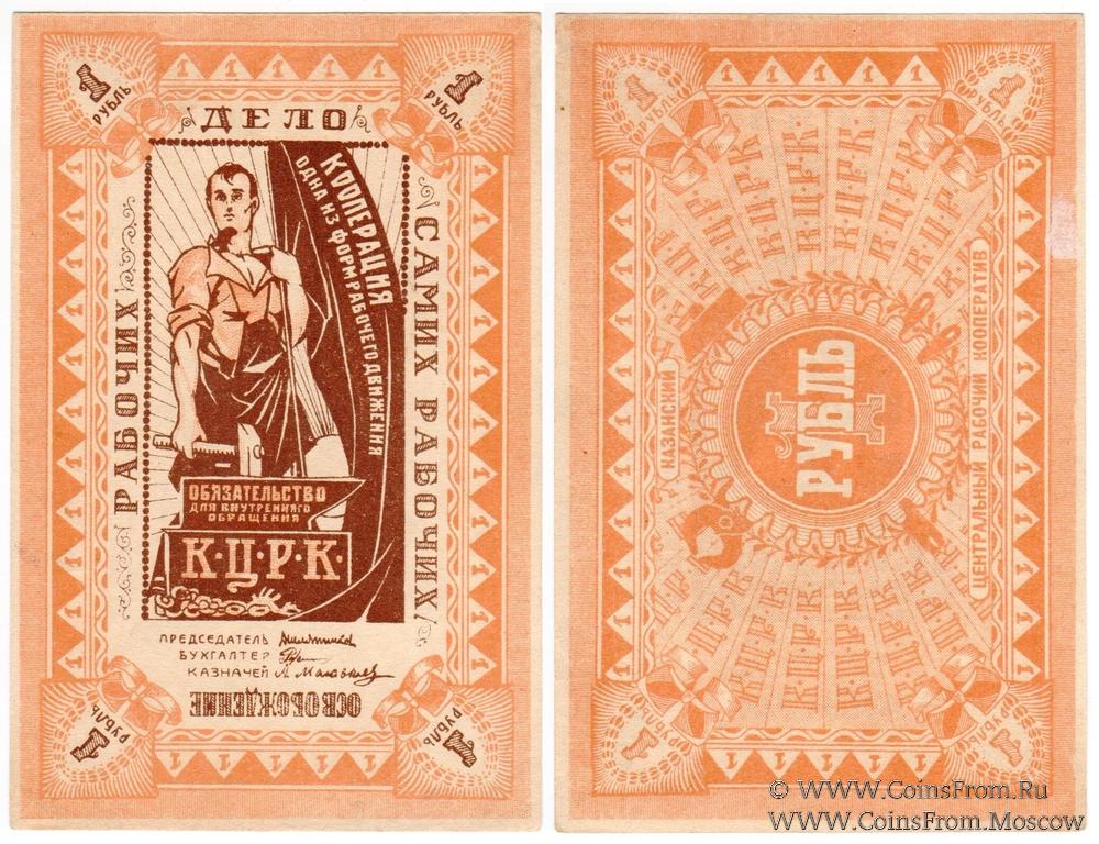 Обязательство для внутреннего обращения 1 рубль без даты. Бланк. Без перфорации. Казанский Центральный рабочий Кооператив К.Ц.Р.К.