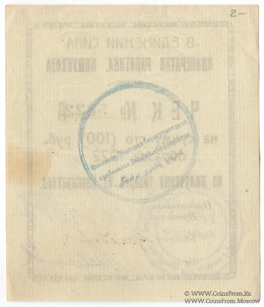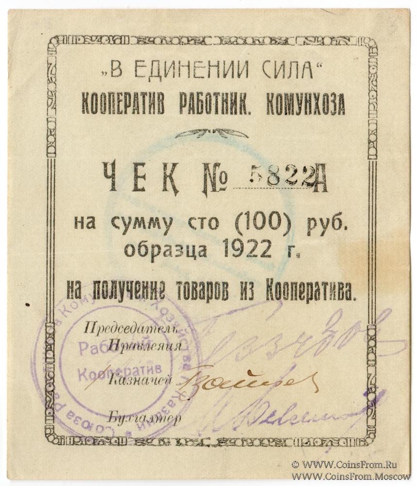 Печать круглая (на аверсе): "Рабочий / Кооператив" (по центру в две строки) / "Союз Работников Коммунального Хозяйства Казани *" (по кругу)