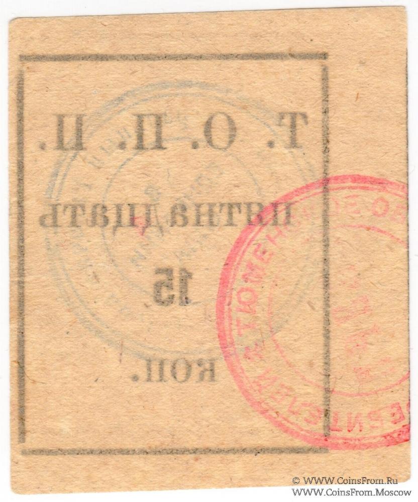 Печать (сиреневая) ЦРК на аверсе 15 коп. Т.О.П.П. Печать (красная) Т.О.П.П. на реверсе. Абкляч аверса на реверсе.