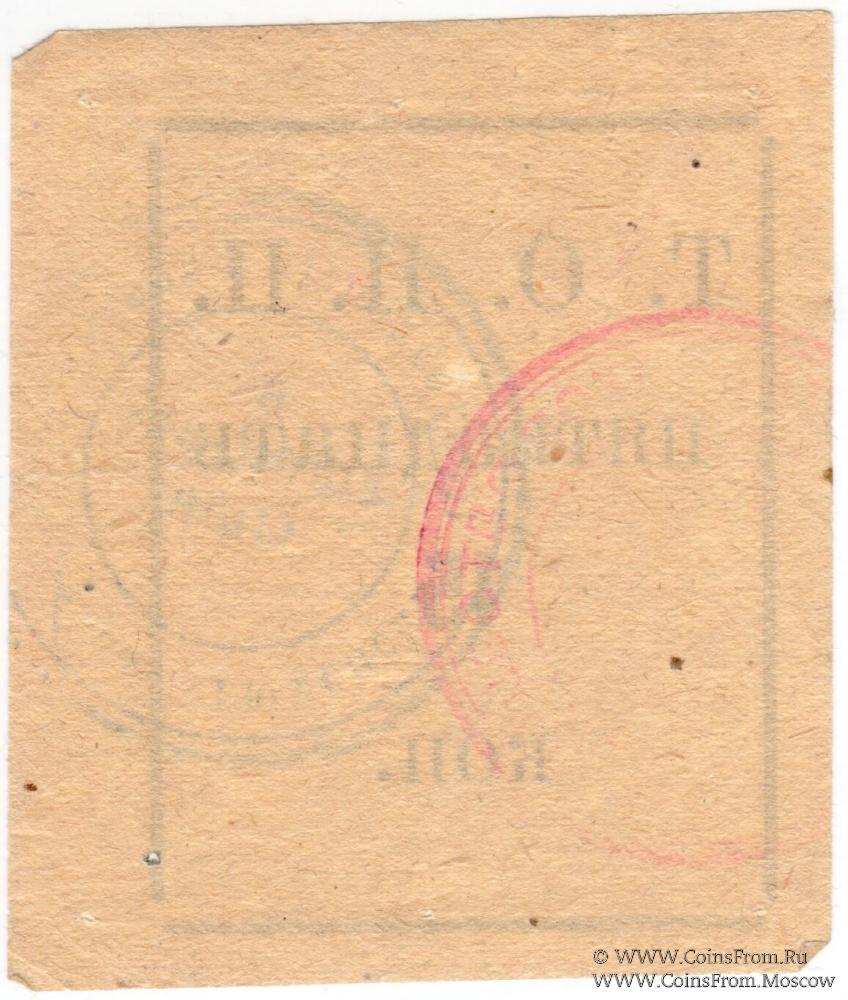 Печать (синяя) Тюменского Центрального Рабочего кооператива на аверсе 15 копеек Тюменского Общества Потребителей "Пчела" (Т.О.П.П.).