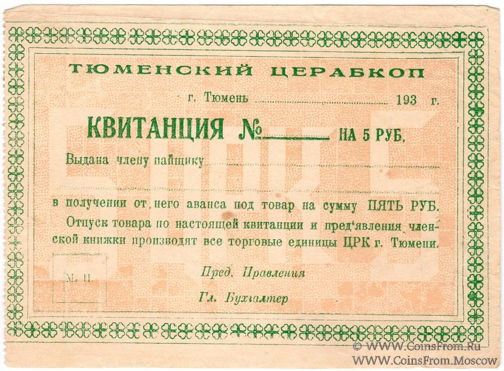 Квитанция. ТЮМЕНСКИЙ ЦЕРАБКОП.