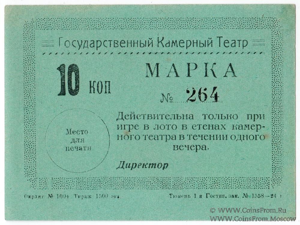 Марка без даты (1924 г.). На зелёной бумаге. Бланк. Тюменский Государственный Камерный Театр.