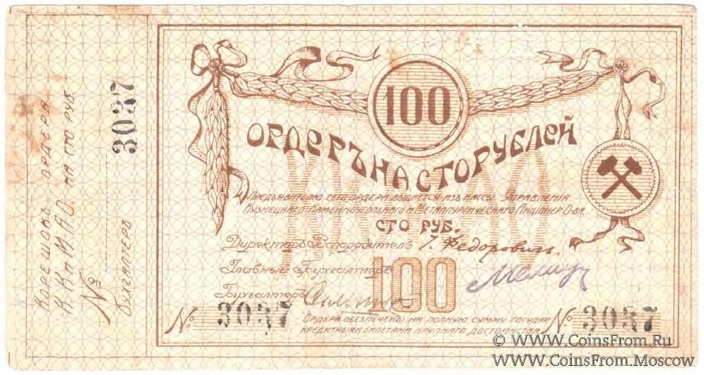 Ордер без даты (1918 г.). С подписями, с корешком. Перфорация "*2*". Управление Кузнецкого Каменноугольного и Металлургического Акционерного Общества.