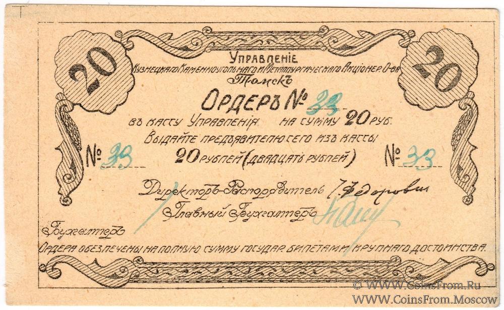 Ордер без даты (1918 г.). Номер от руки, подпись. Управление Кузнецкого Каменноугольного и Металлургического Акционерного Общества (ККМАО).