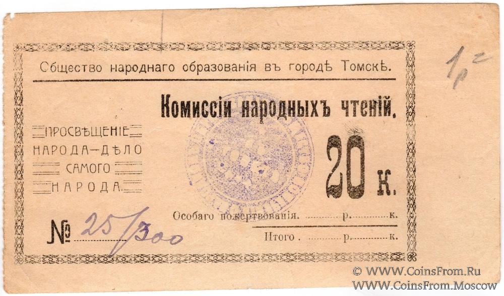Круглая печать: "ОБЩЕСТВО ПОЛУЧЕНИЯ НАРОДНОГО ОБРАЗОВАНИЯ" (по кругу) / "ВЪ ТОМСКЪ" (по центру)