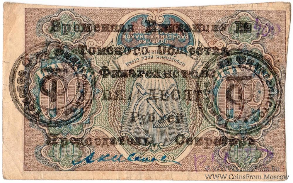 Выпуск 2: на знаках РСФСР 1919 г. (с печатью общества и надпечаткой номинала)..