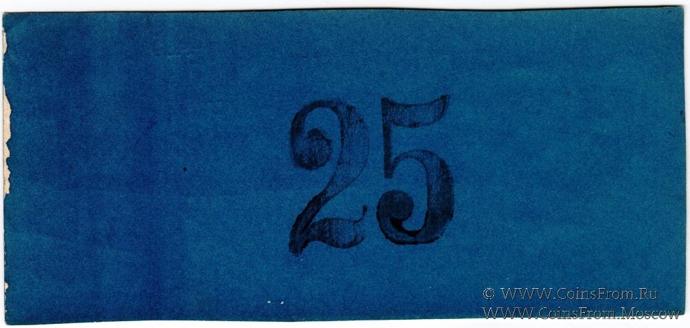 На аверсе: слово "ОБРАЗЕЦ" красными чернилами по диагонали; без подписи Председателя; номер напечатан. На реверсе: номинал "25" крупно.