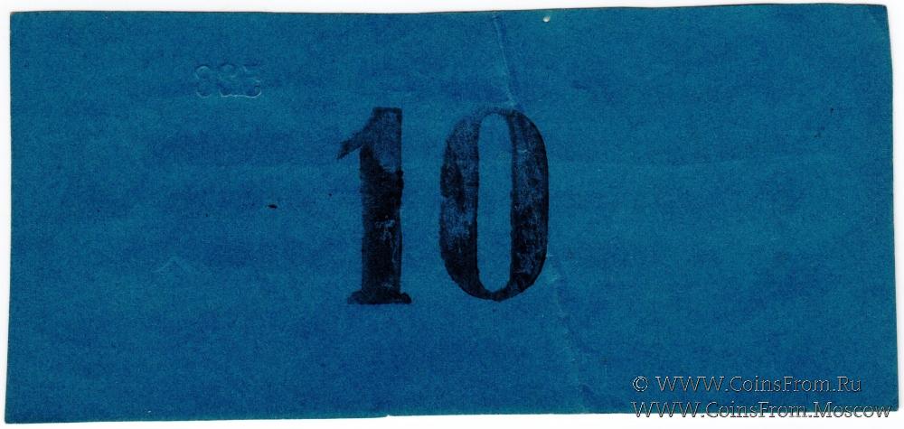 На аверсе: слово "ОБРАЗЕЦ" красными чернилами по диагонали; без подписи Председателя; номер напечатан. На реверсе: номинал "10" крупно.