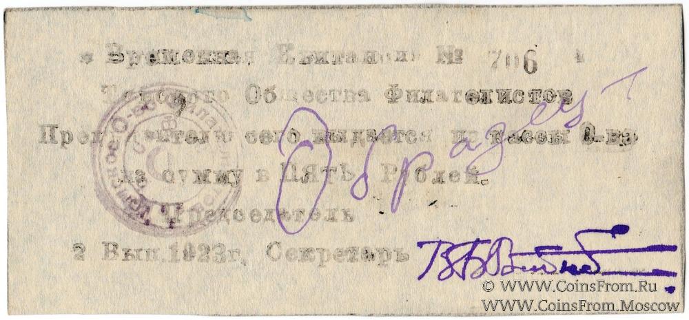 На аверсе: слово "ОБРАЗЕЦ" синими чернилами по диагонали; без подписи Председателя; номер напечатан. На реверсе: номинал "5" крупно.