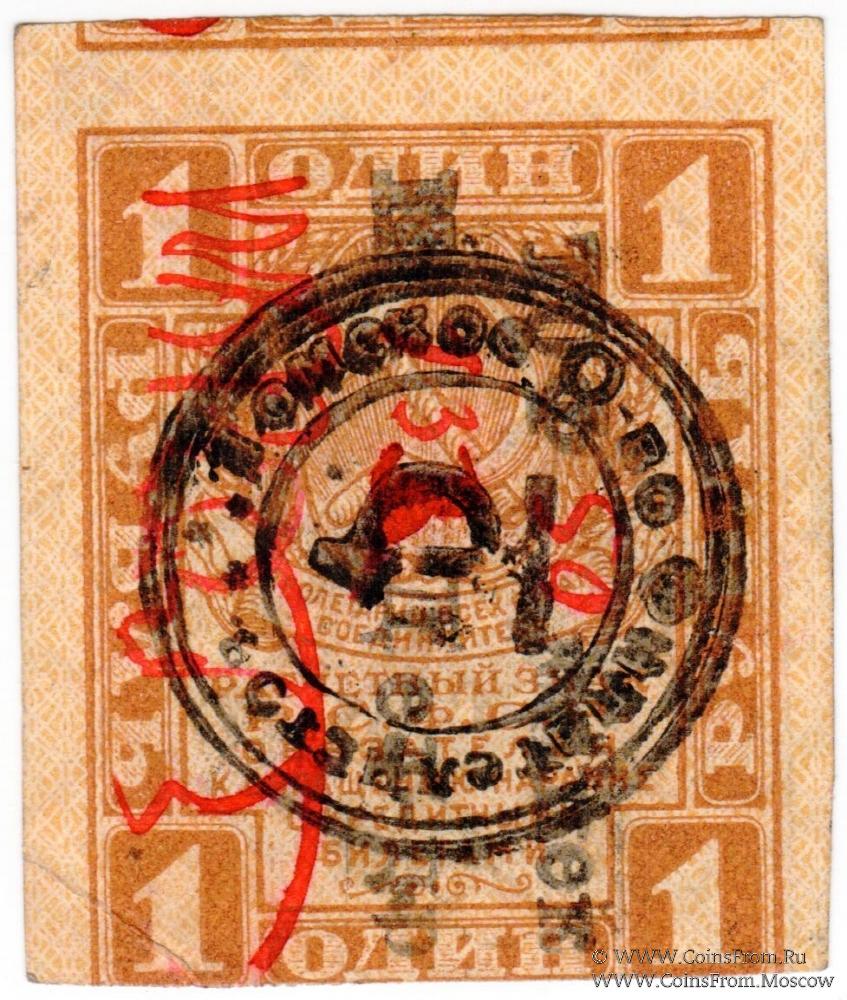 На 1 рубле 1919 г.: печать и подпись - на аверсе; надпечатка номинала "50" крупно, подпись и штамп - на реверсе.