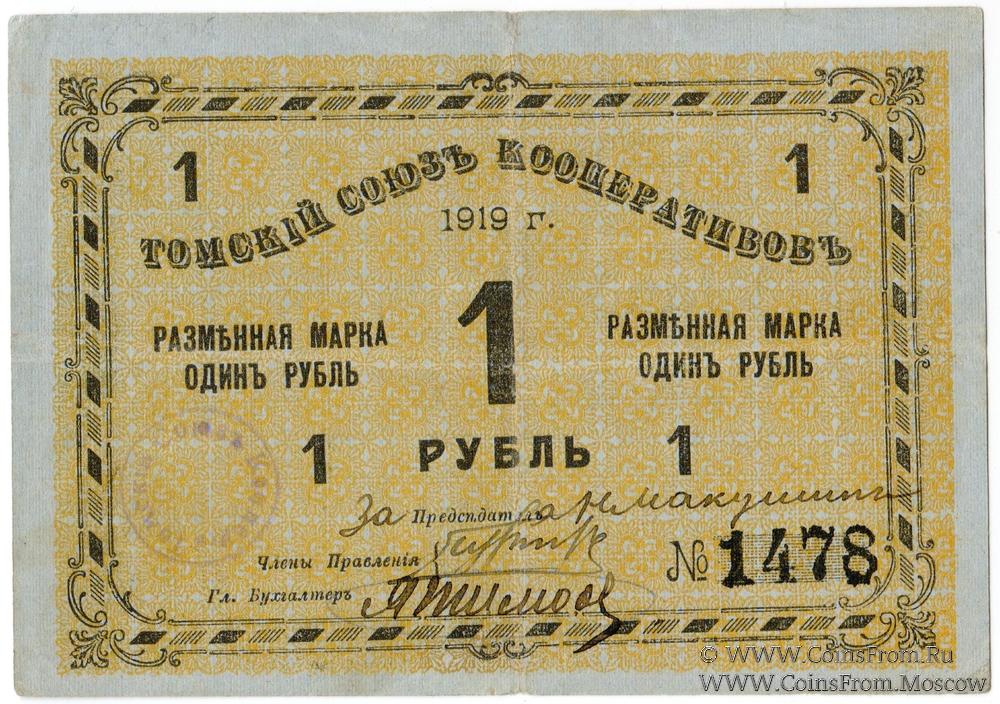 1 руб 1919 Томск Союз кооп № 1478 АВ