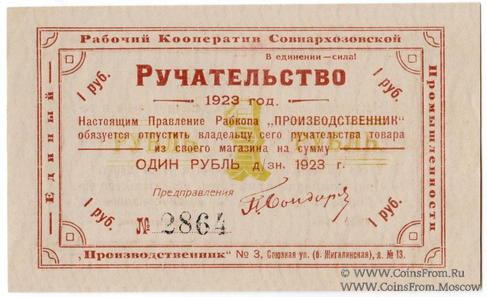 Ручательство. Единый Рабочий Кооператив Совнархозовской Промышленности "ПРОИЗВОДСТВЕННИК" № 3.