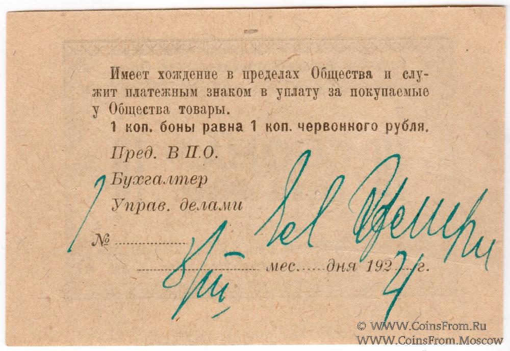 Бона 1924 r. На реверсе подпись и дата. Тульское Военно-Потребительское Общество.
