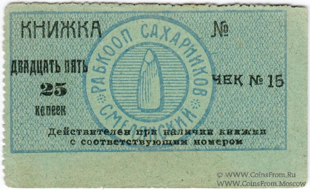 Без названия. Чек № 15. Без номера. Рабочий кооператив сахарников Смелянский.