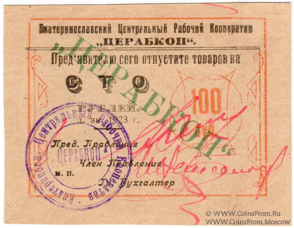 В денежных знаках 1923 г. Екатеринославский Центральный Рабочий Кооператив "ЦЕРАБКОП".