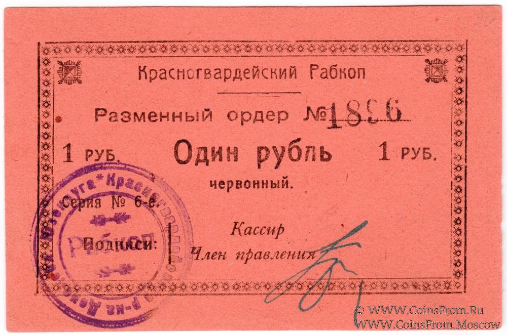 Разменный ордер в червонных рублях без даты (1923 г.). Серия 6-е. Красногвардейский Рабочий кооператив.