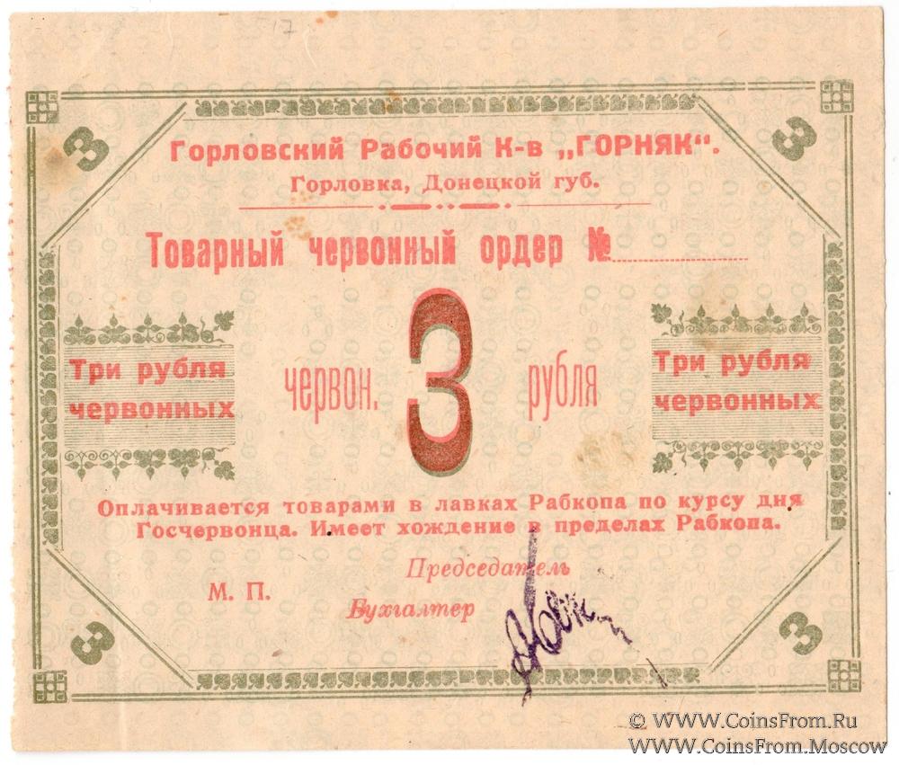 3 червонных рубля 1923 г. (Горловка)