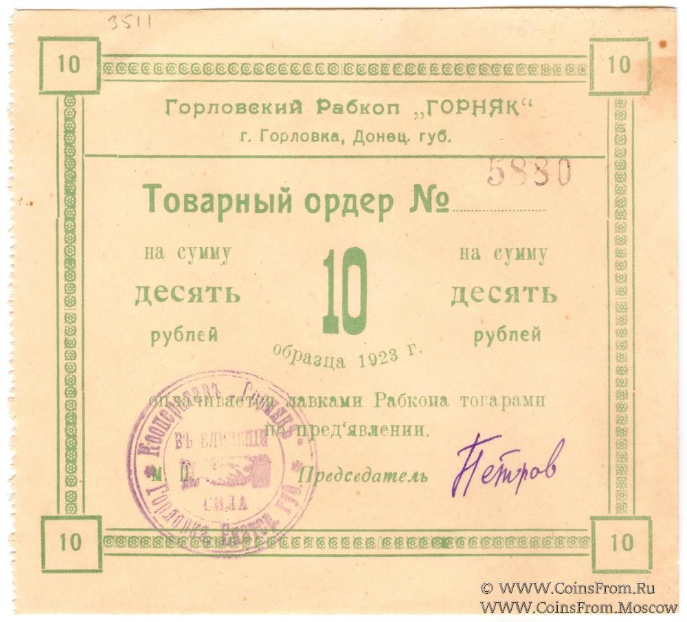 10 рублей 1923 г. (Горловка)
