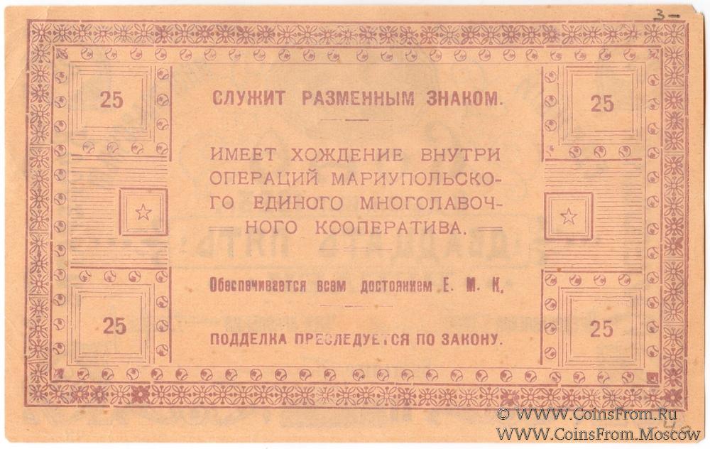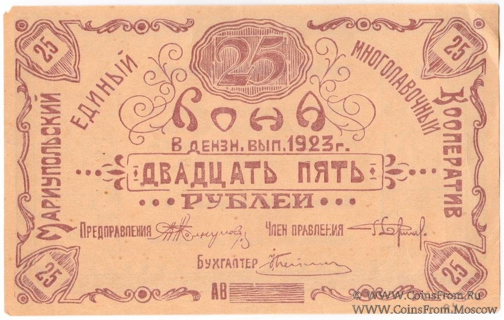 Бона 1923 г. Серия АВ. Бланк. Мариупольский единый многолавочный кооператив.