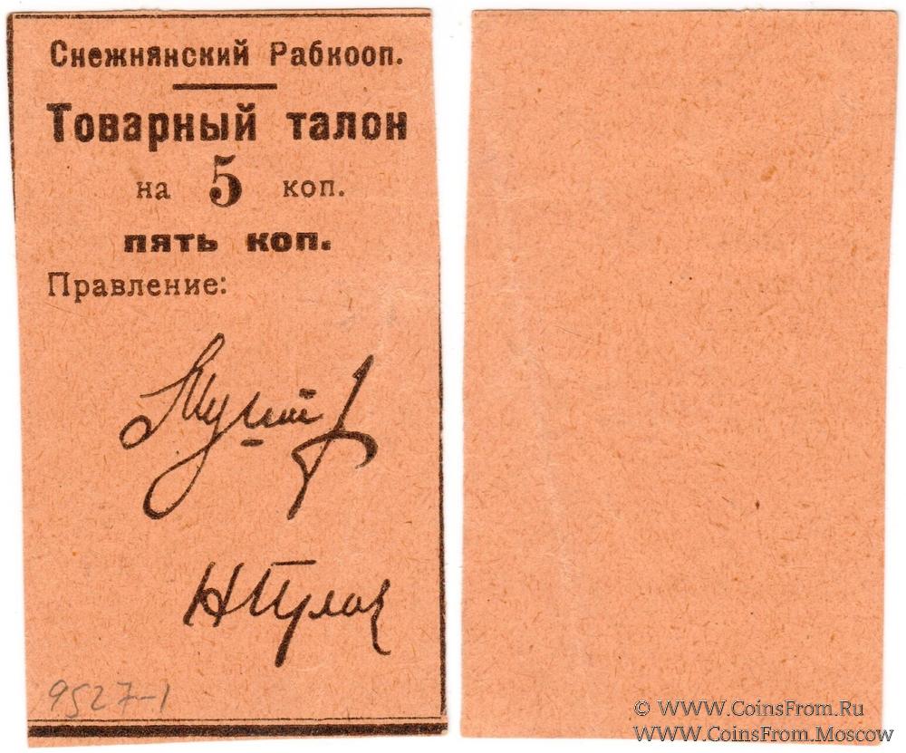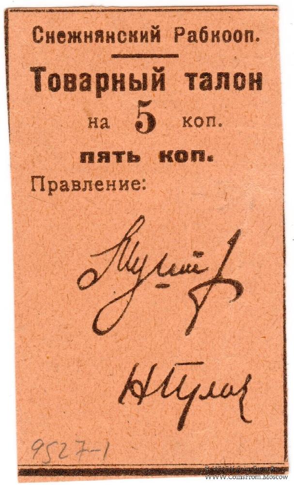 Товарный талон без даты (1925 г.). Бежевый. Снежнянский Рабкооп.