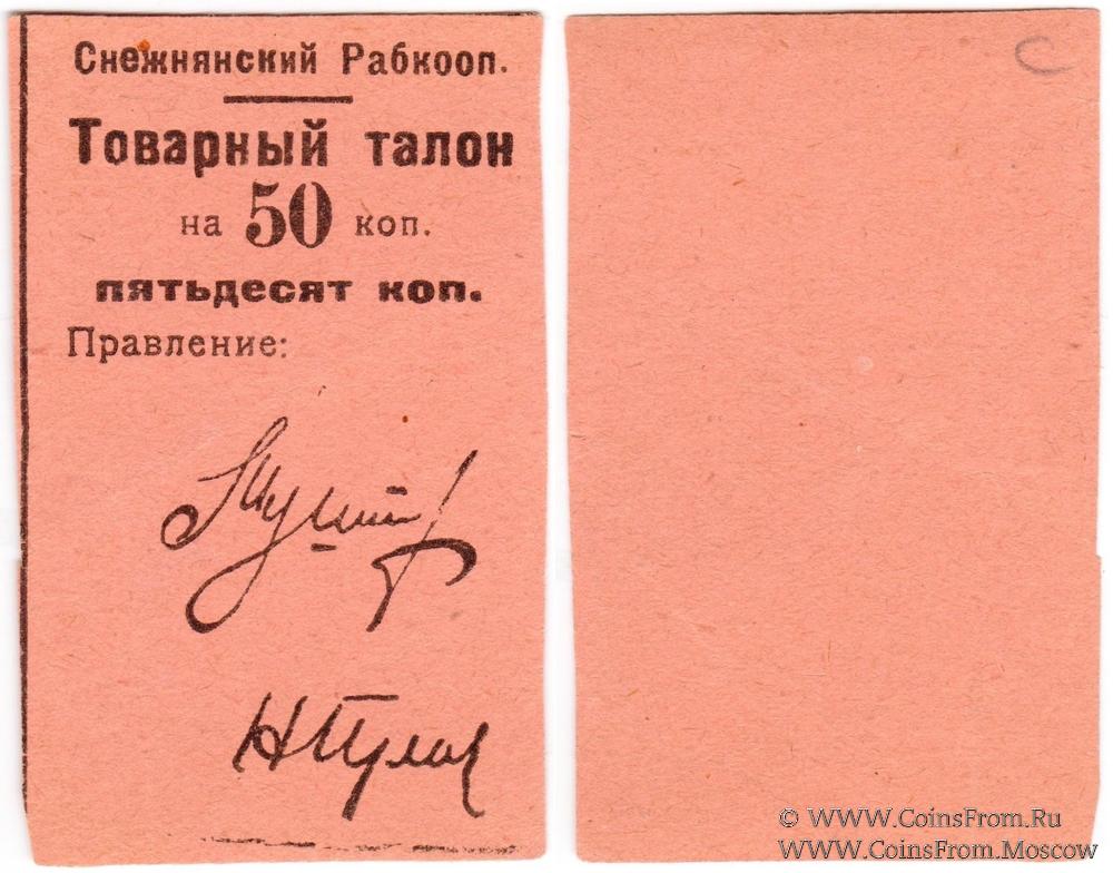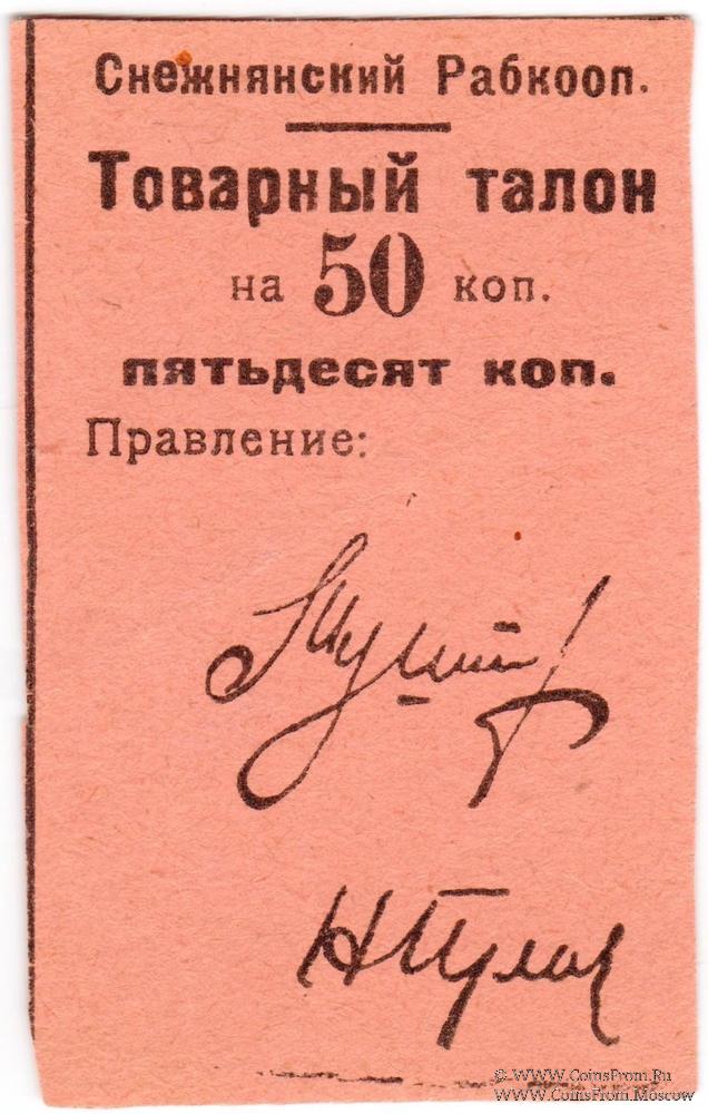 Товарный талон без даты (1925 г.). Розовый. Снежнянский Рабкооп.