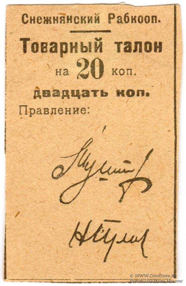 Товарный талон без даты (1925 г.). Жёлтый. Снежнянский Рабкооп.