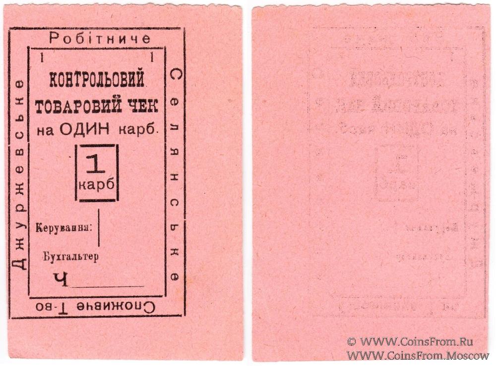 Контрольный товарный чек (Контрольовий товаровий чек) без даты. Бланк. Джуржевское Рабоче-Крестьянское Потребительское Общество (Джуржевське Робітниче Селянське Споживче Товариство).
