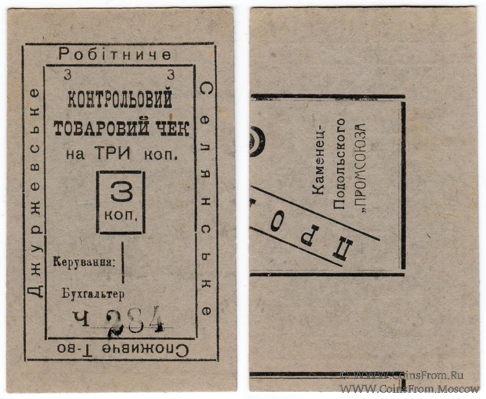Контрольный товарный чек (Контрольовий товаровий чек) без даты. Бланк. Вторичное использование: вариант 2 (Фабрика табачных изделий в М.Дунаевцах Каменец-Подольского "ПРОМСОЮЗА"). Джуржевское Рабоче-Крестьянское Потребительское Общество (Джуржевське Робітниче Селянське Споживче Товариство).