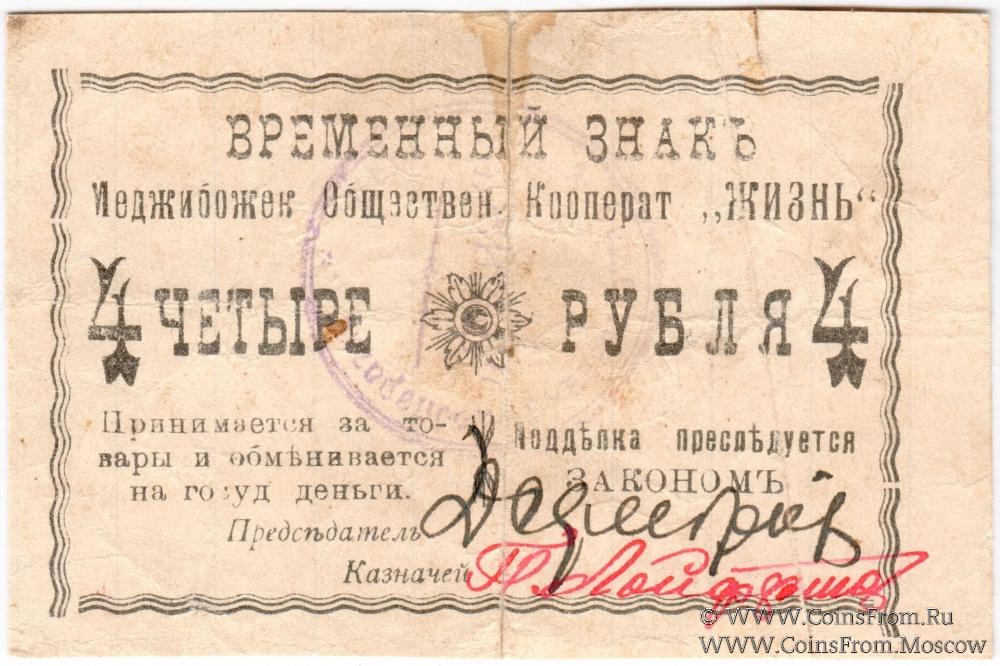 Временный знак без даты (1918 г.). Меджибожский Общественный кооператив "ЖИЗНЬ" (Межибiжський Громадський Кооператив "ЖiЗНЬ").