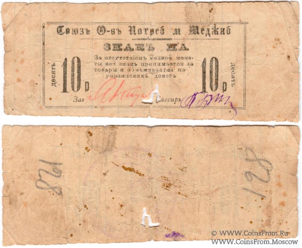 Знак без даты (1923 г.). Вариант 4 рамки. Бумага линованная. Печать Союза ремесленников на реверсе. Союз Обществ Потребителей Меджибож.