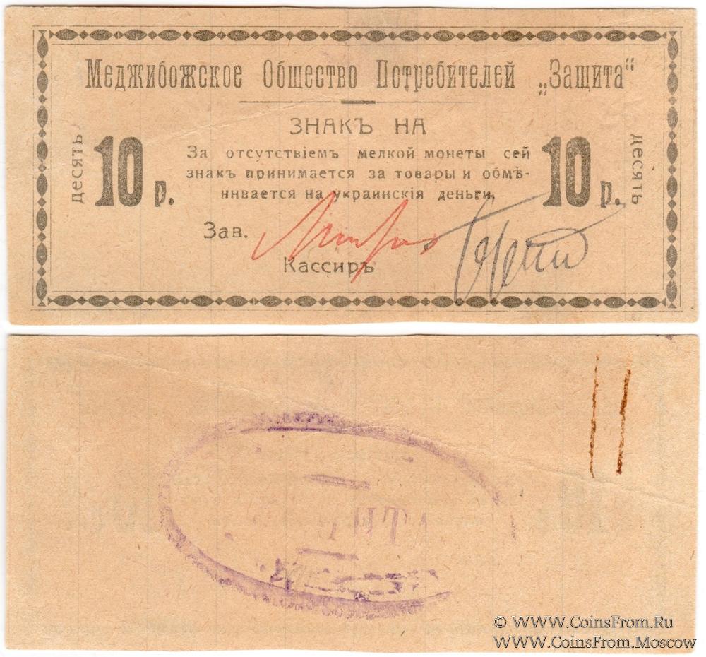 Временный знак без даты (1918 г.). Бумага линованная. Меджибожское Общество Потребителей "Защита".