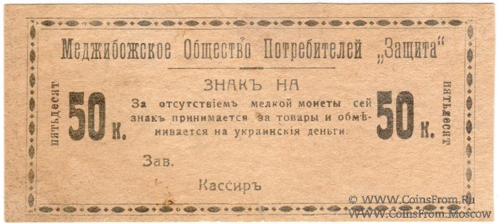 Временный знак без даты (1918 г.). Бланк. Меджибожское Общество Потребителей "Защита".