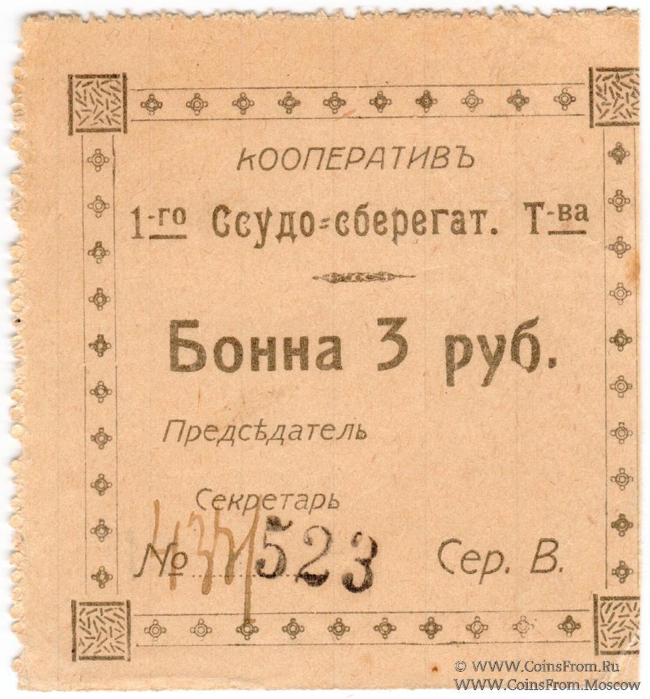 Бонна без даты. Серия В. Кооператив 1-го Ссудо-Сберегательного Товарищества.