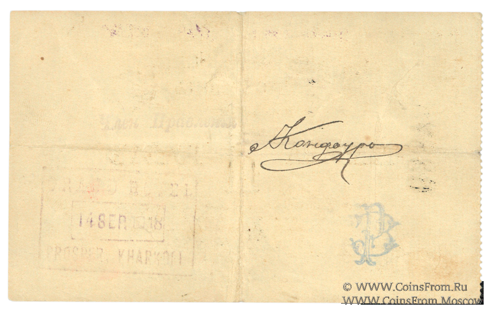 Чек 1918 г. Законченный. На реверсе прямоуголный штамп 1918 г.