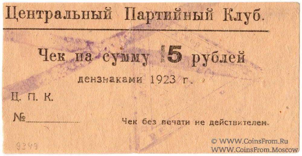 Чек. Вариант 2. Крестообразное гашение. Центральный Партийный Клуб.