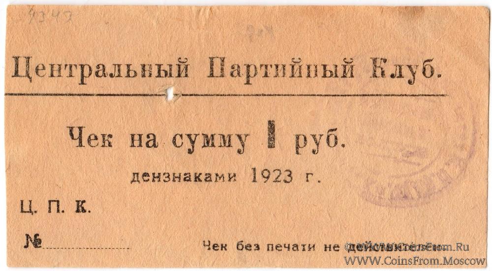 Чек. Вариант 2. С круглой печатью. Центральный Партийный Клуб.