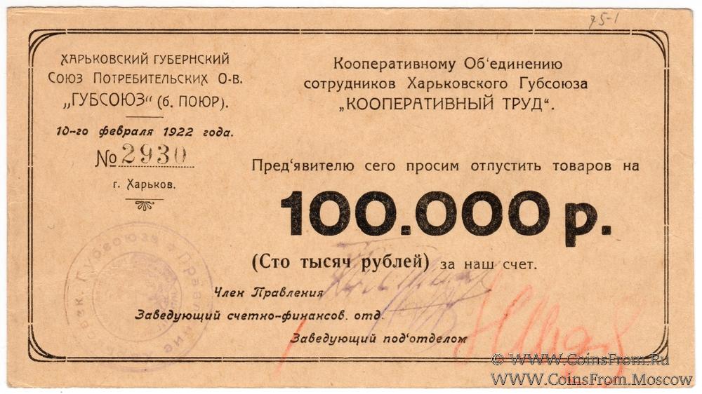 100.000 рублей 1922 г. (Харьков)