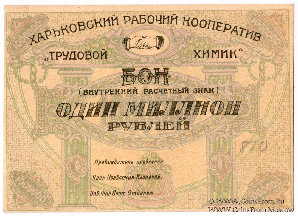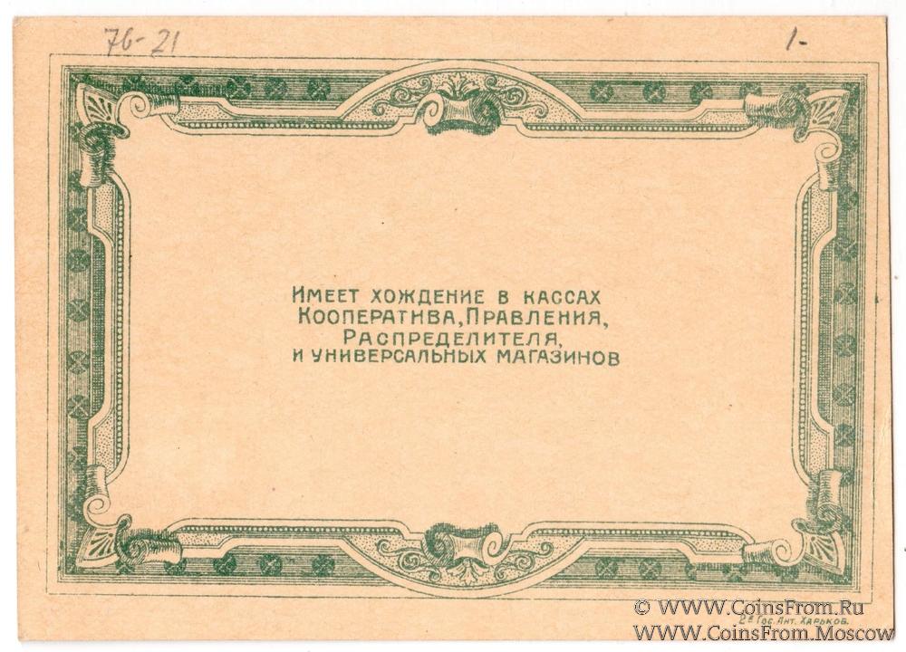 Бон без даты. Фон реверса без ряби. Харьковский Рабочий Кооператив "Трудовой Химик»".