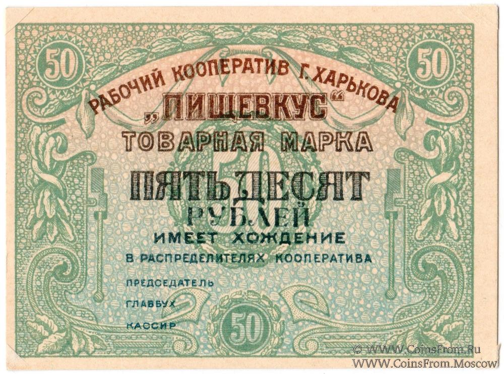 Товарная марка без даты (1922 г.). Рабочий кооператив г. Харькова "ПИЩЕВКУС".
