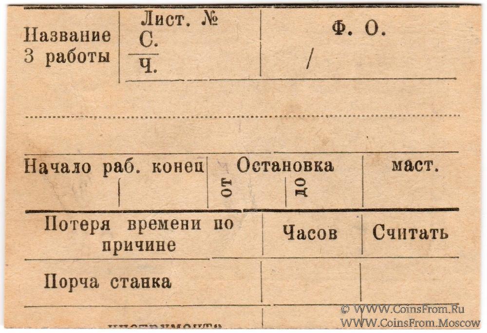 Бон без даты (1922 г.). На аверсе штамп сиреневого цвета "2-58". Подпись чёрная. Завод "Электросила" №1.