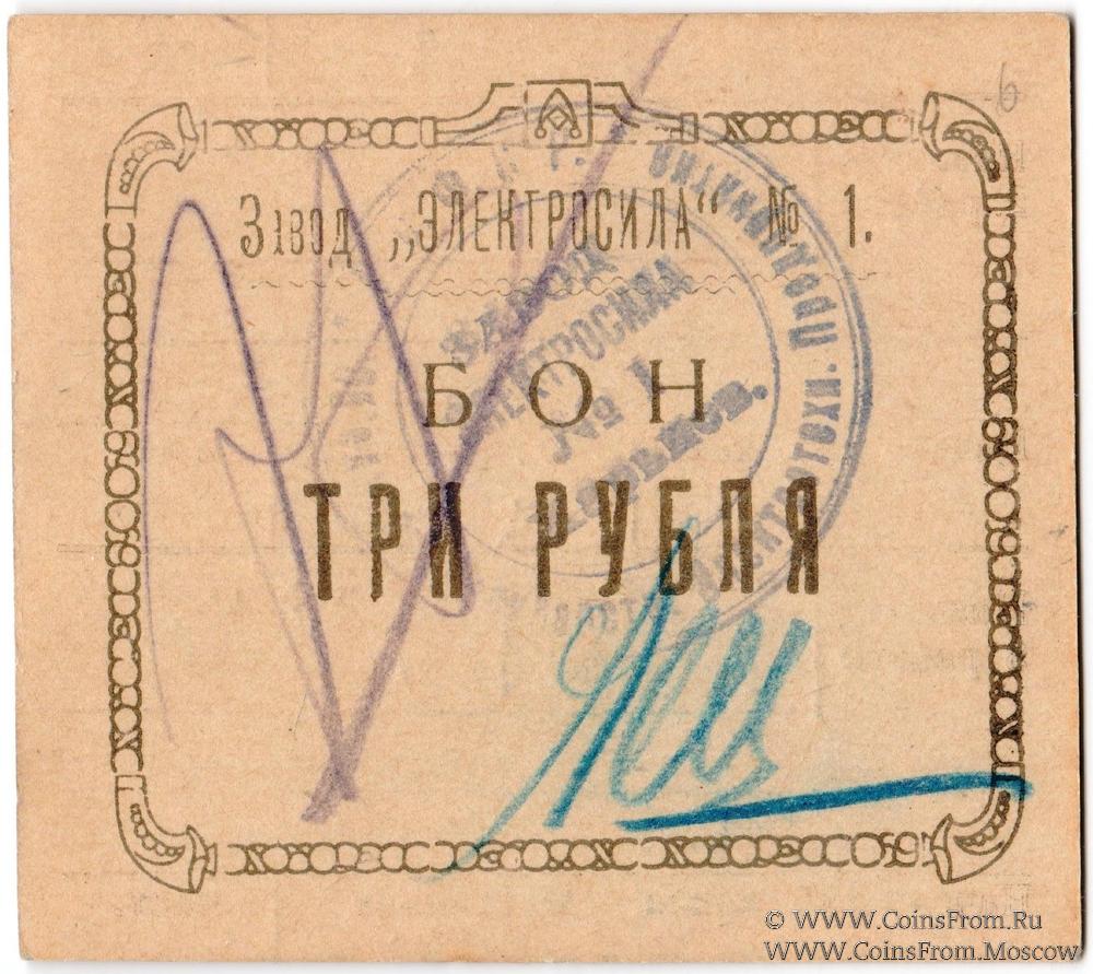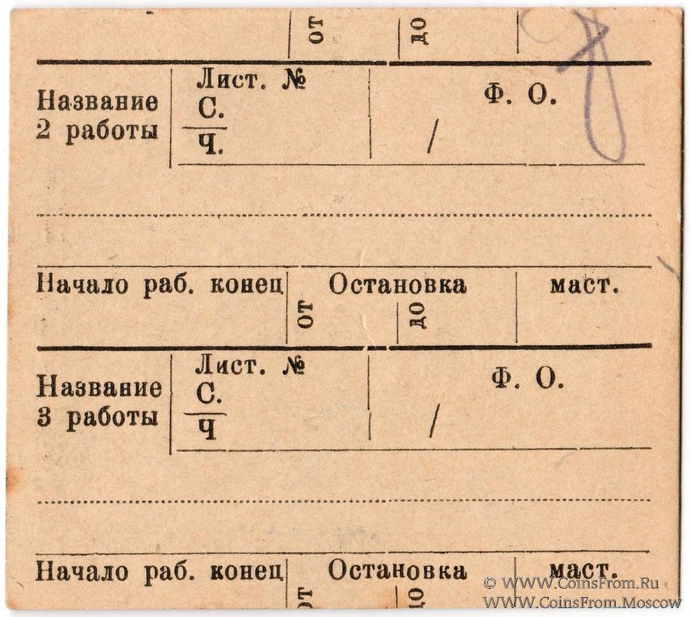 Бон без даты (1922 г.). Подпись синяя. Завод "Электросила" №1.