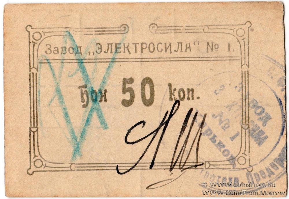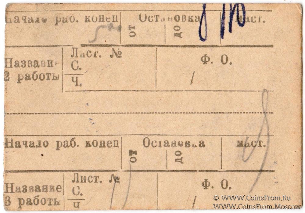 Бон без даты (1922 г.). Подпись чёрная. Завод "Электросила" №1.